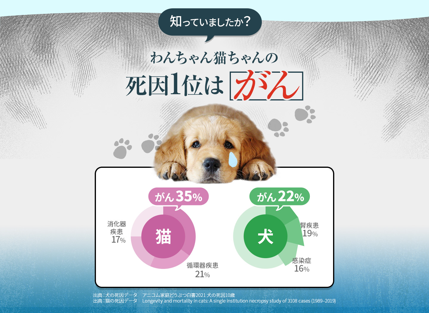 年齢が若いうちから、定期的に受検することで、現在の体のがんリスクを知る事ができ、大切なわんちゃん・ねこちゃんの『がん早期発見』につなげていただけます。
